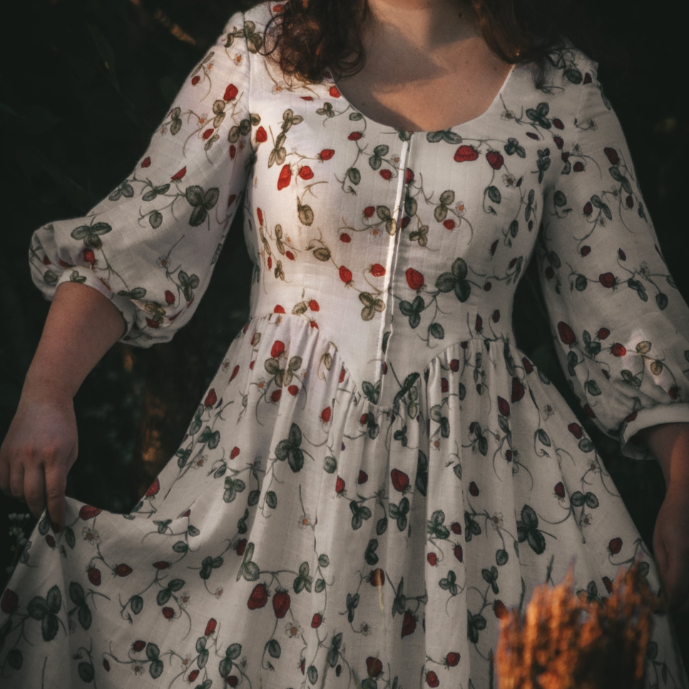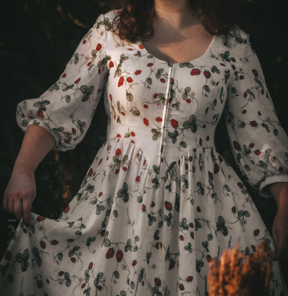 Handmade cottagecore muslin corset style dress