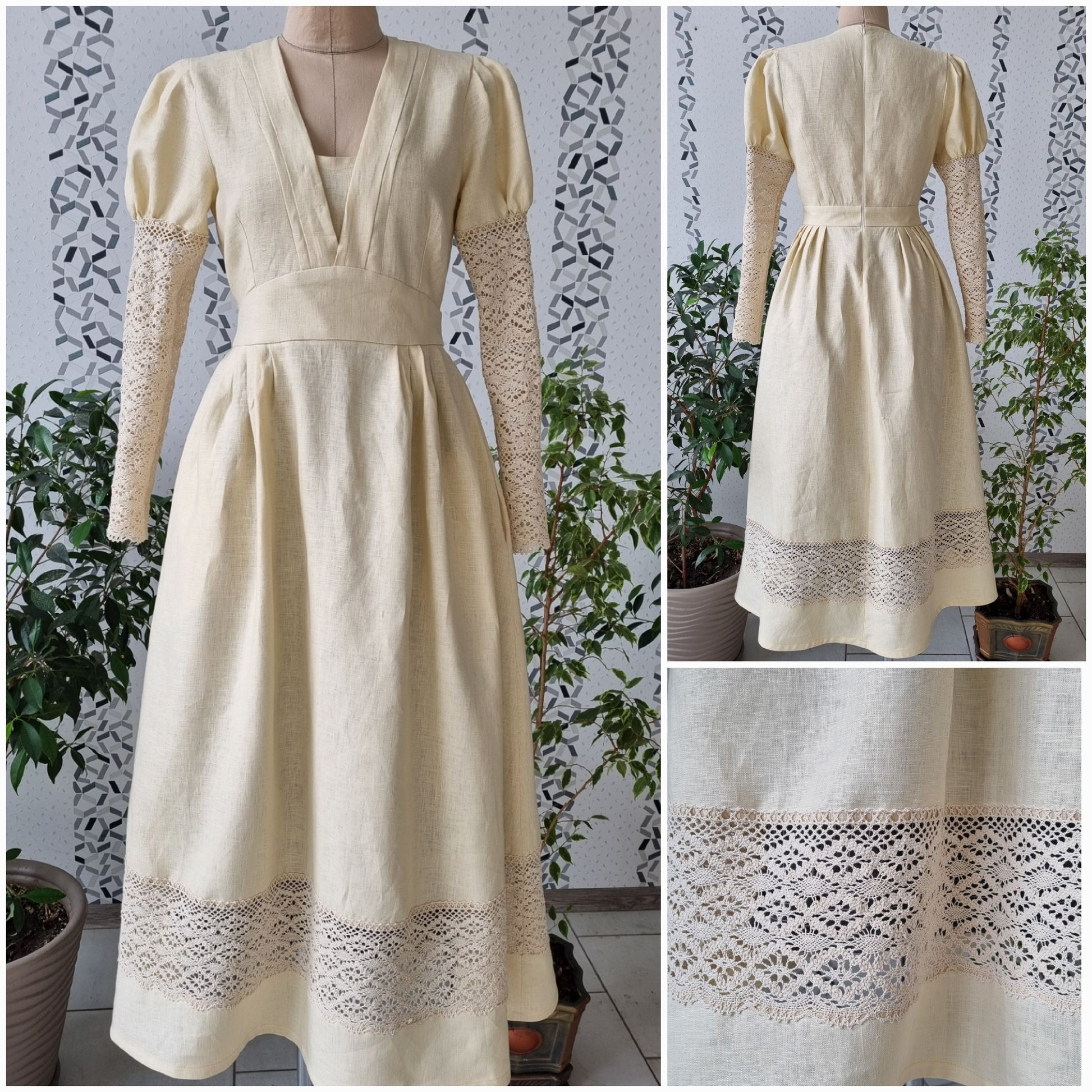 Handmade princesscore sustanable linen dress with lace.
