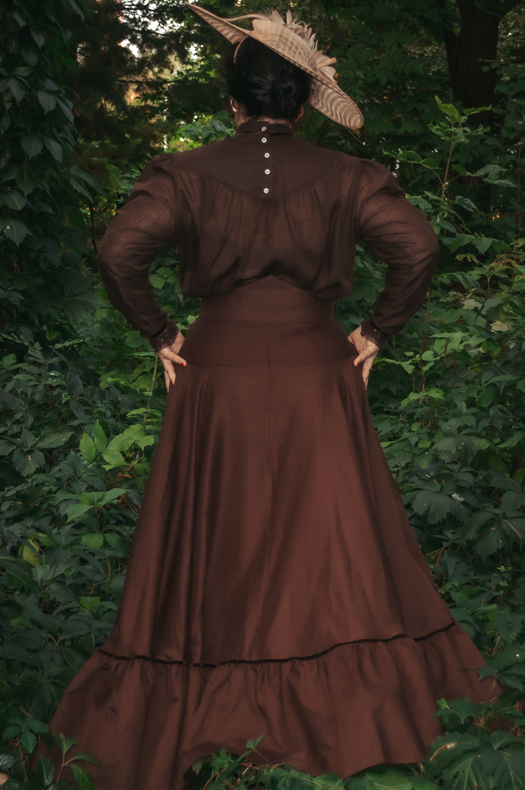 Handmade Victorian edwardian gibson girl suffragette 1900s linen set with lace and velvet ribbon.
